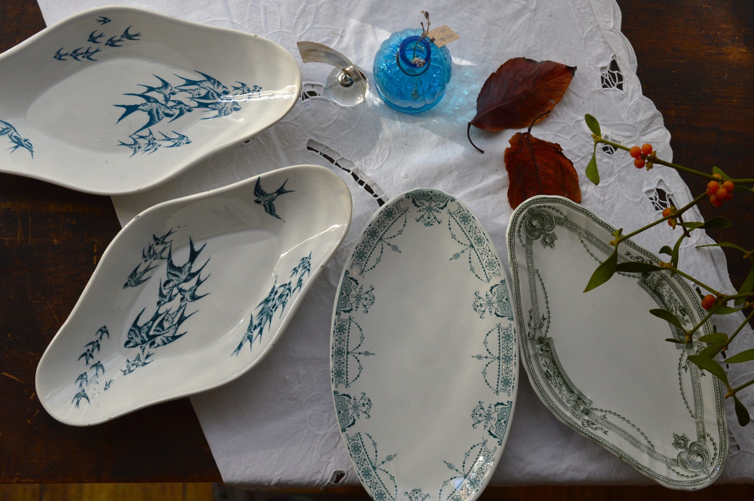 フランスの古いラヴィエ4点 グリニー、サンタマン、リュネヴィル窯のラヴィエ、どれも19世紀後半フランスの窯元で…