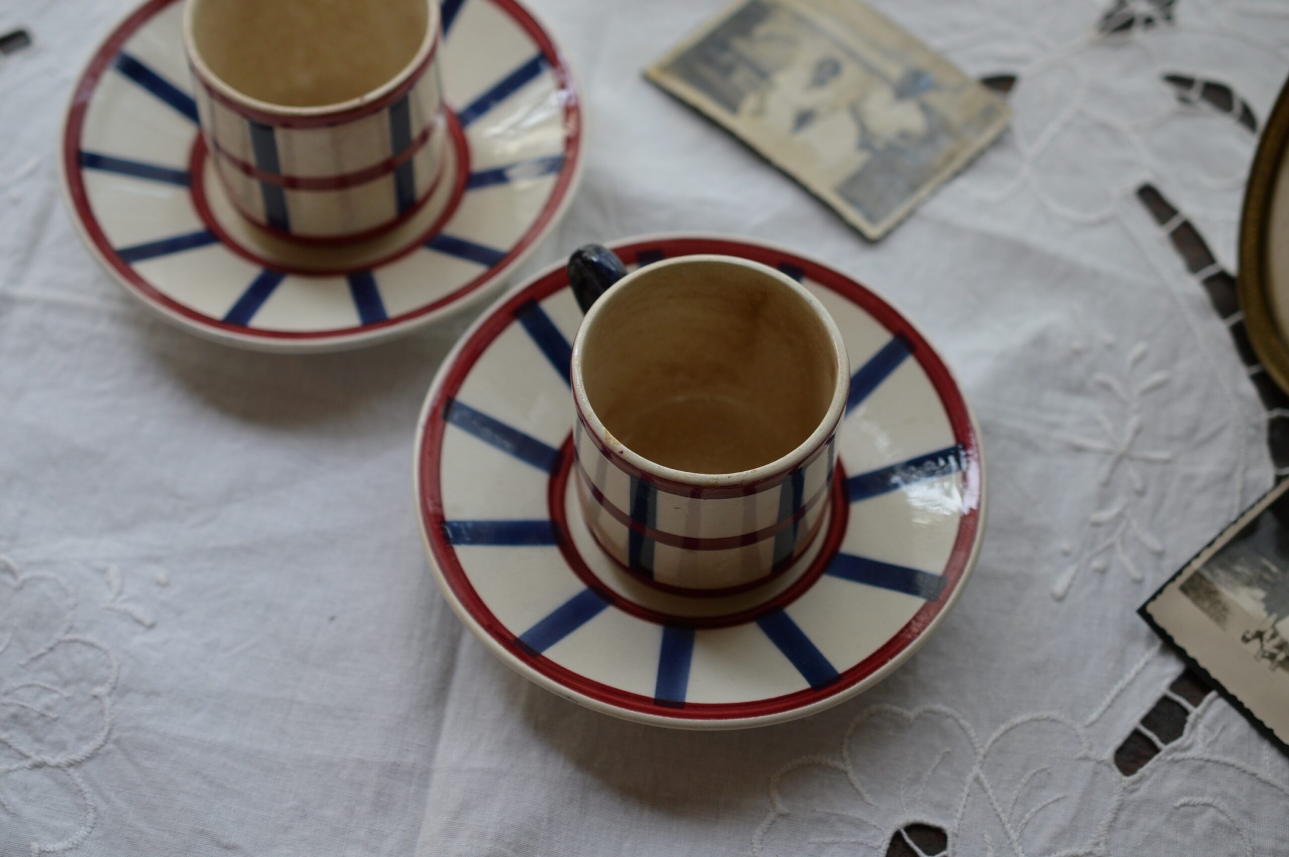 フランスの古窯 Saint Amand et Hamage Nord で作られた古いカップ&ソーサーのセット …
