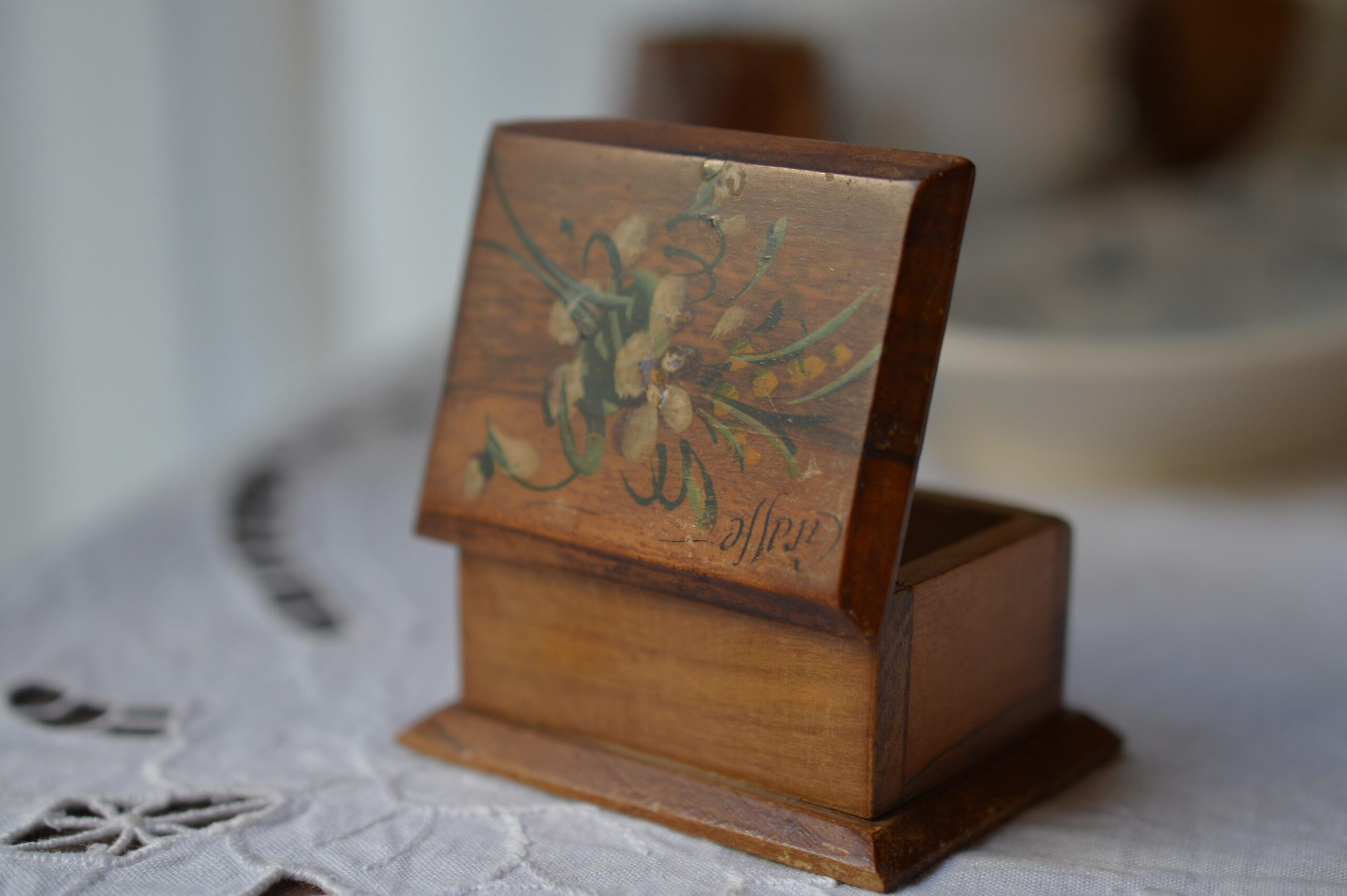 モシュリンヌ小さな木箱 Grasse 蓋の左上に小さく書かれた Grasse は、南フランスのプロヴァンス地方…