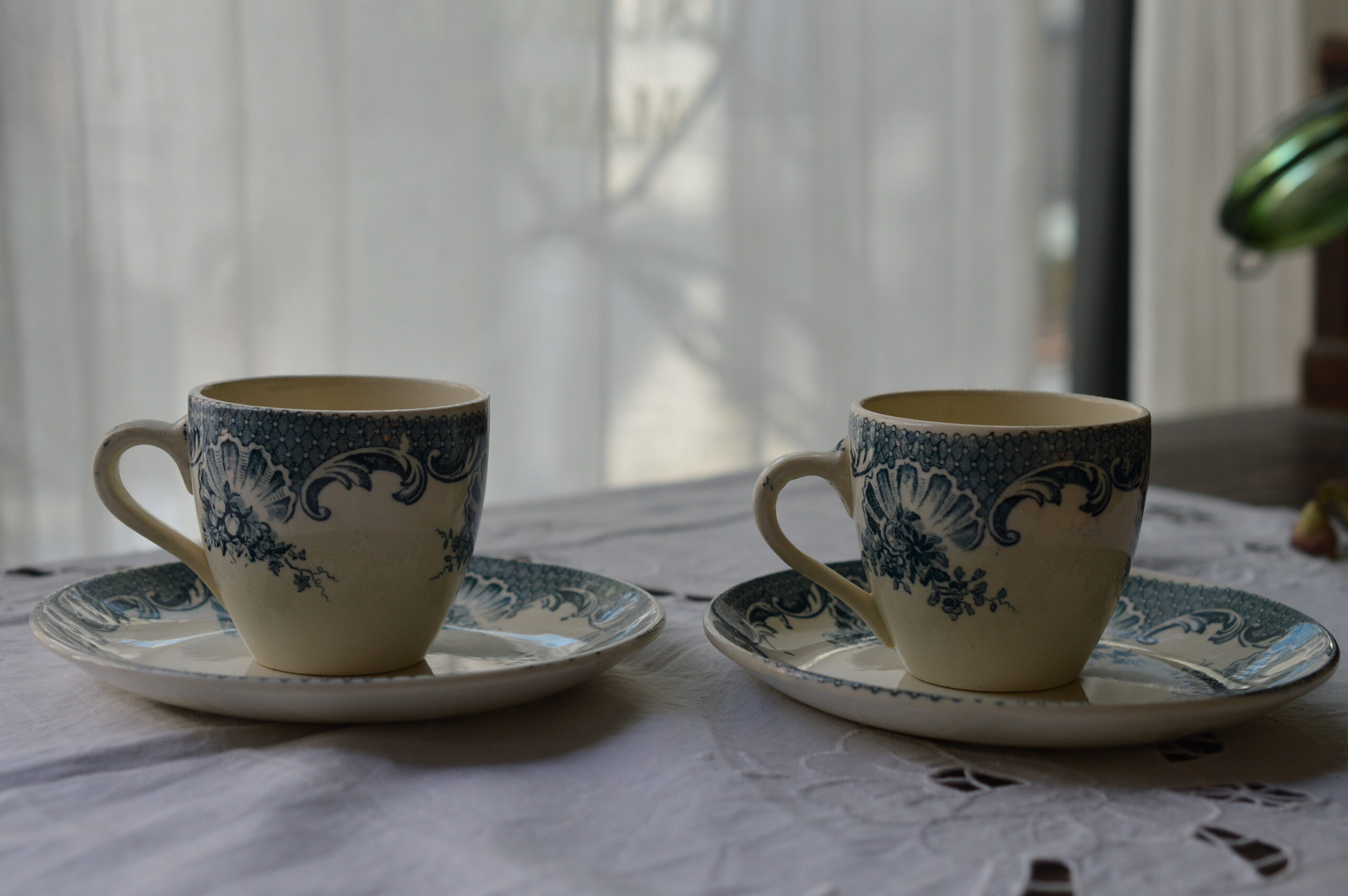 St.Amand La Valliere カップ&ソーサー 落ち着いたアイボリー地と青緑色の転写(トランスファ…